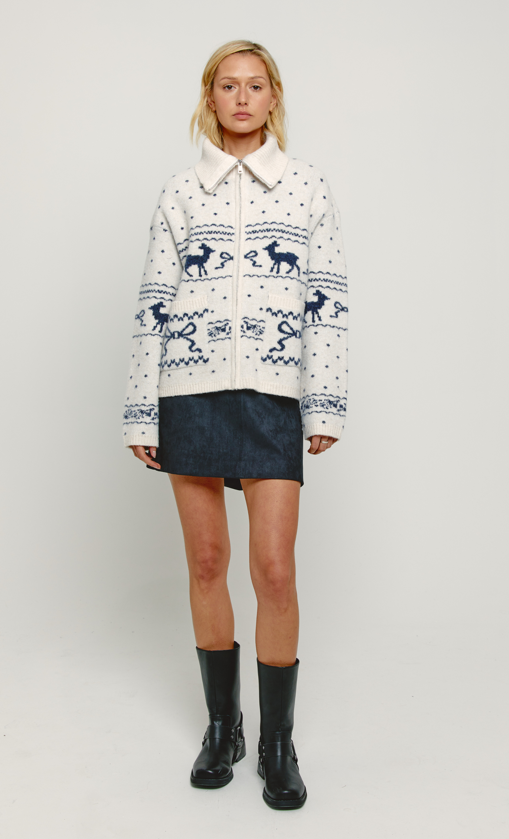 Cream Fairisle Knit Zip Jumper